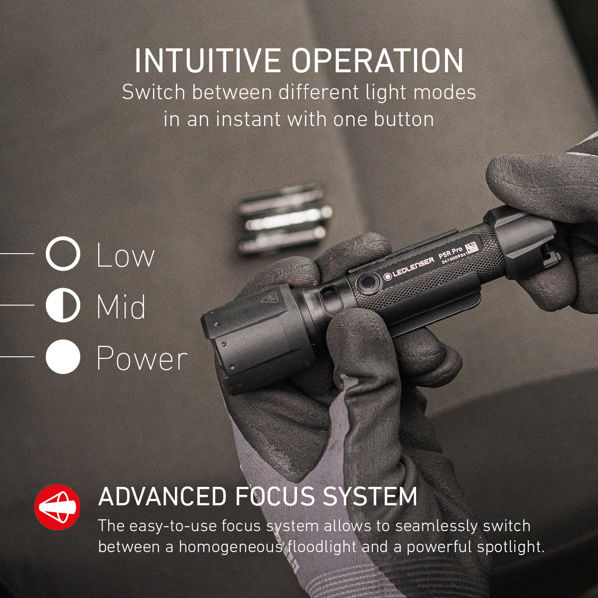 - Precision Light Control: Offers a precise, focused beam that reaches up to 280 meters. The Advanced Focus System enables you to easily switch between a wide flood beam for close-up tasks and a concentrated spot beam for long-range visibility.