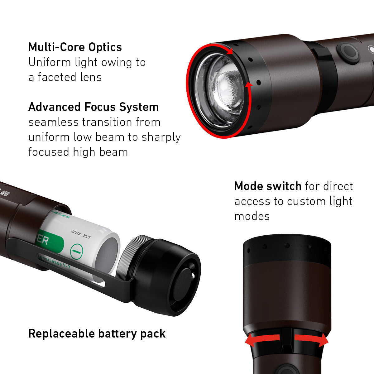 - Advanced Focus System - focus the light beam as a spot or flood, without losing quality of light