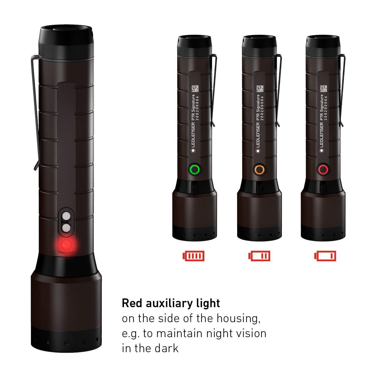 - Red Light Mode - maintain night vision in the dark